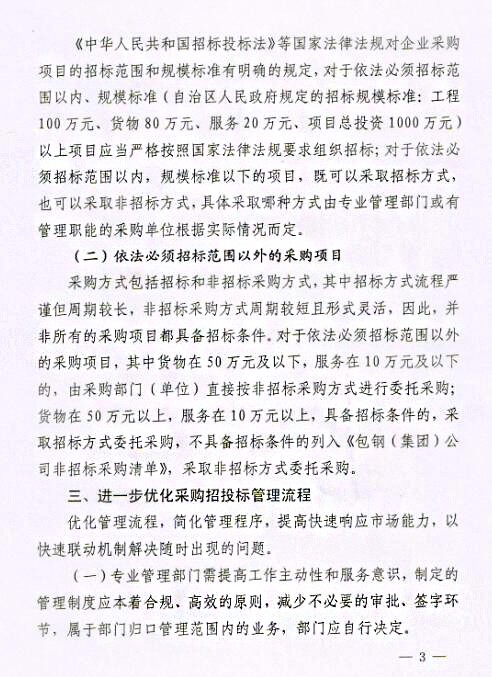 關于印發《包鋼(集團)公司關于進一步強化采購招投標管理實施辦法(試行)》的通知